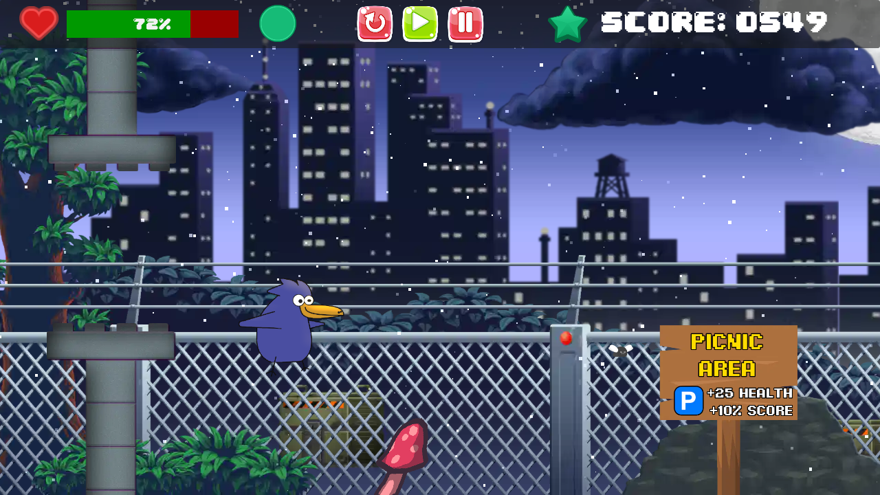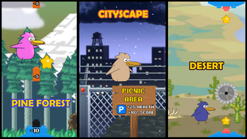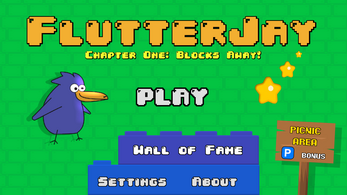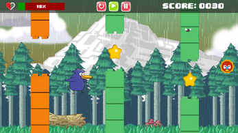 FlutterJay is a large blue Jaybird trying desperately to navigate his world. He needs your help to guide him ever onward, come rain or shine, through as many obstacles as possible while trying to keep him safe and healthy. Please help him.